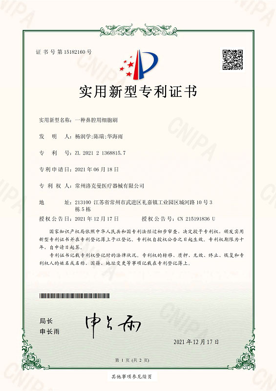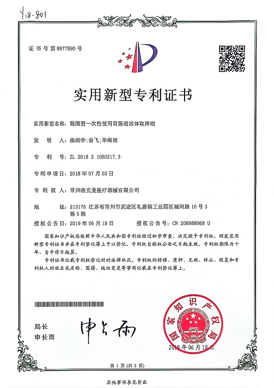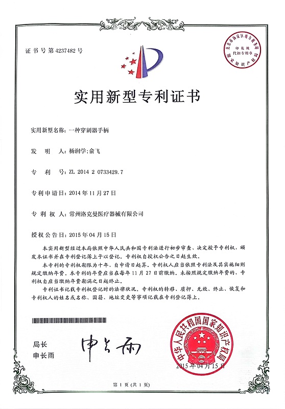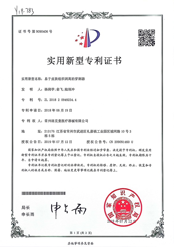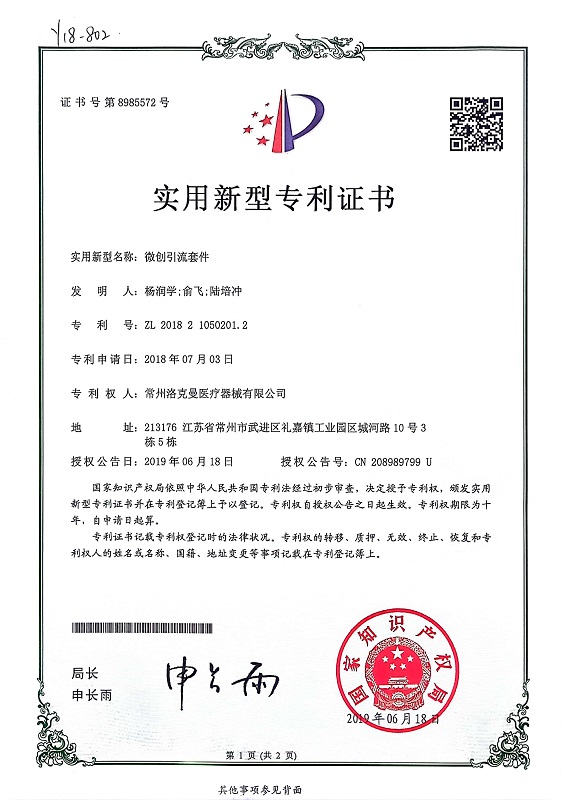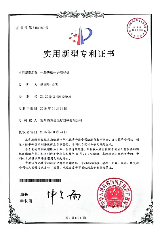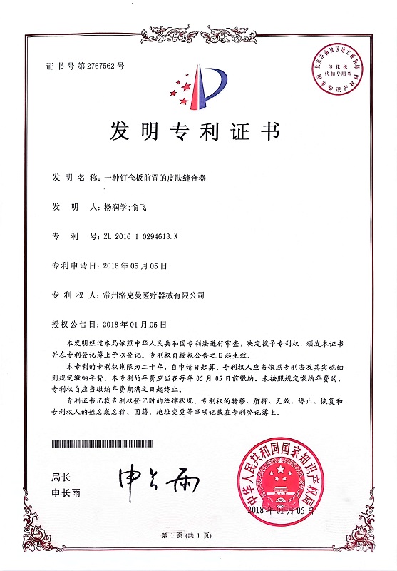 洛克曼集團多年來致力于打造新型醫療科技產業,已經取得了52項專利,其中發明專利3項。并在2019年,成功掛牌江蘇股權交易中心,且先后獲得了“國家高新技術企業”、“常州市縫合器械工程技術研究中心”、“常州市專精特新中小企業”、“常州市瞪羚企業”、“江蘇省專精特新中小企業”等榮譽稱號。